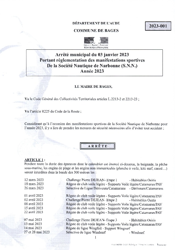 -Arrêté municipal du 3 janvier 2023 - Manifestations sportives (mis en ligne le 03/01/2023)